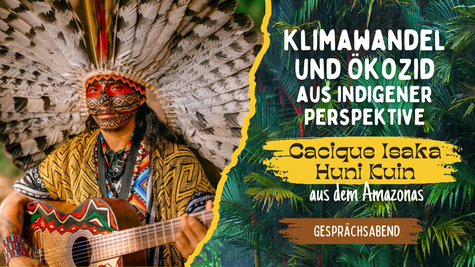 In diesem Online-Vortrag spricht der indigene Anführer Cacique Isaka Huni Kuin aus dem brasilianischen Amazonas über die Herausforderungen der indigenen Bevölkerung durch Klimawandel und Ökozid.